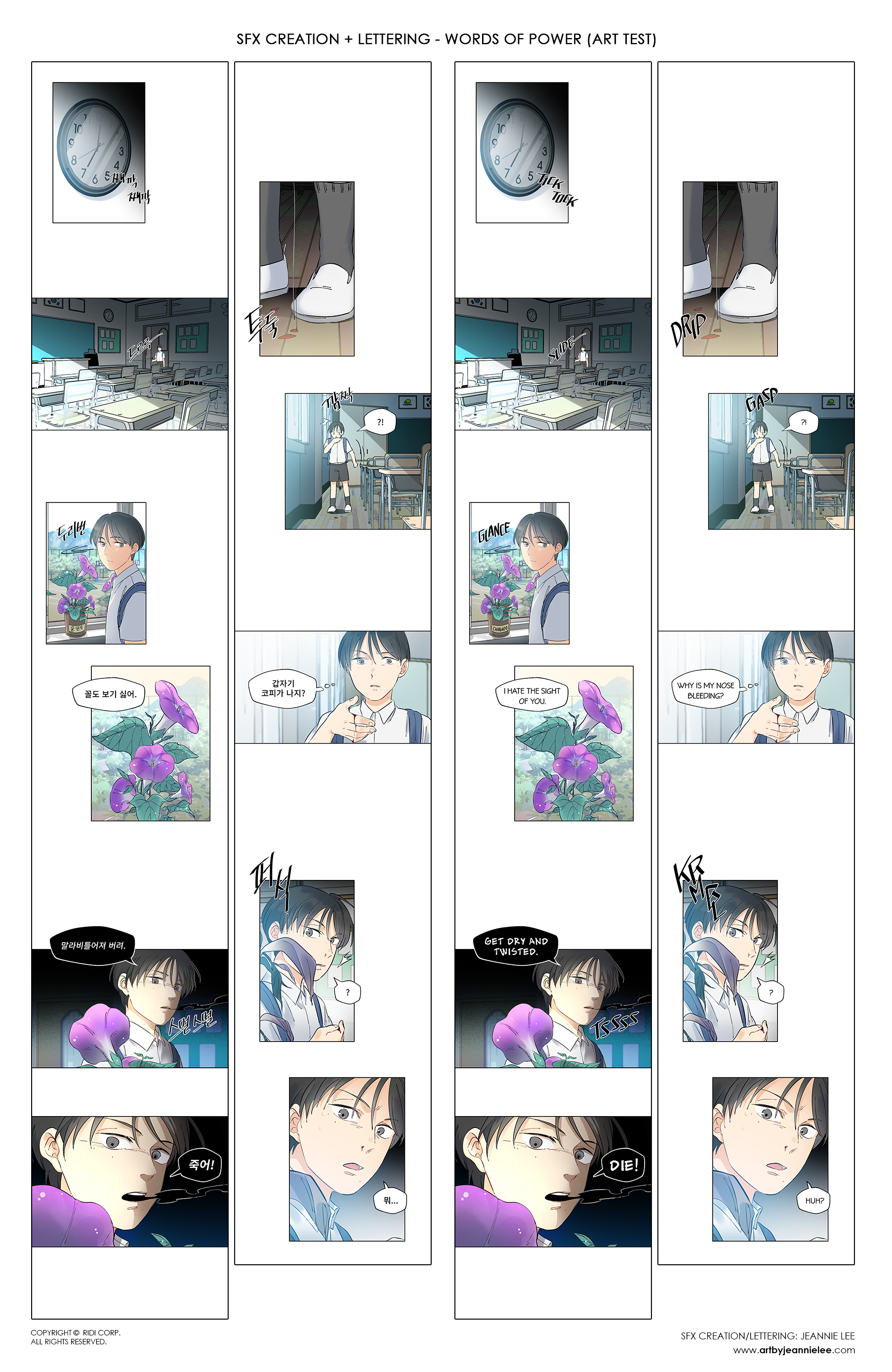 A short art test I completed for RIDI Corp. Webtoon pages are from the series "Words of Power."