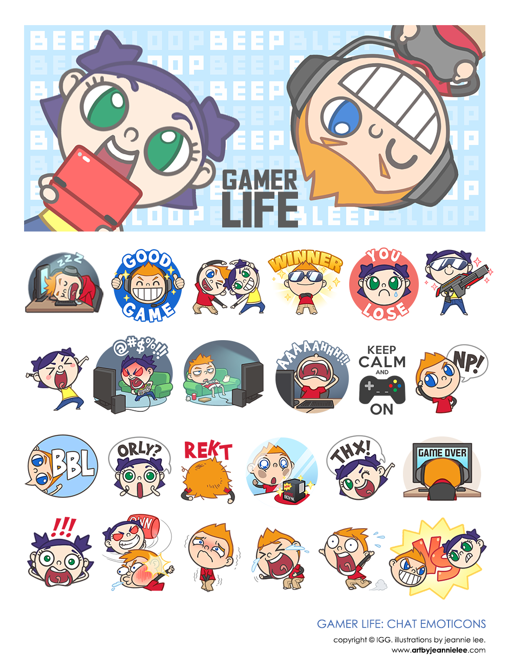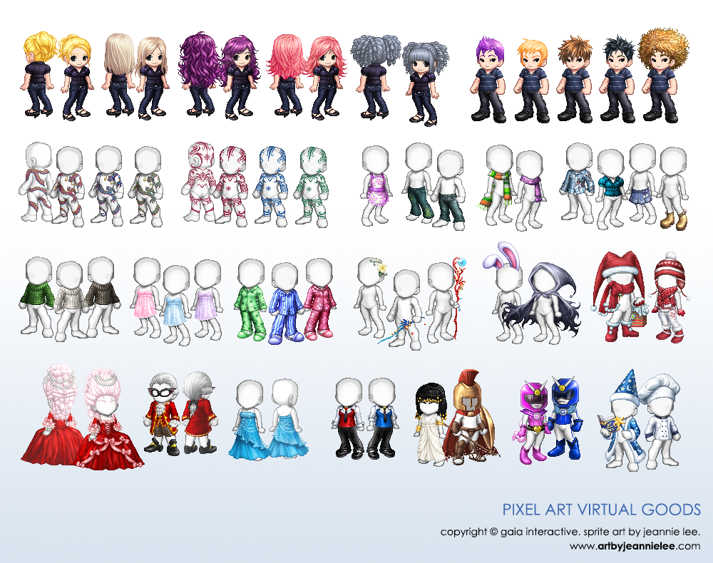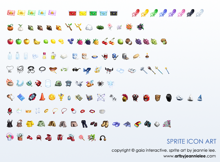 Collection of sprite/pixel art, and both static and animated emoticons for various chat applications.